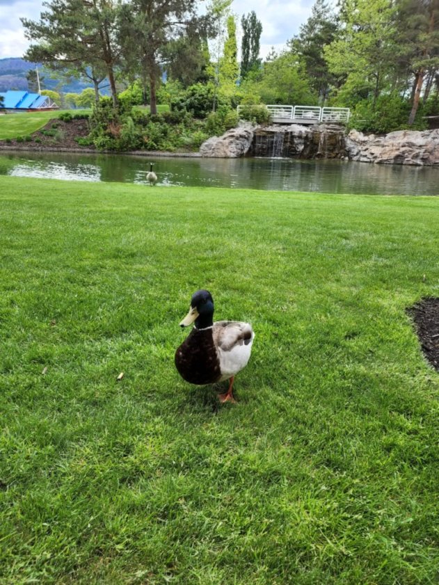 Enjoying our room’s porch and watching the ducks at The Royal Kelowna Hotel!