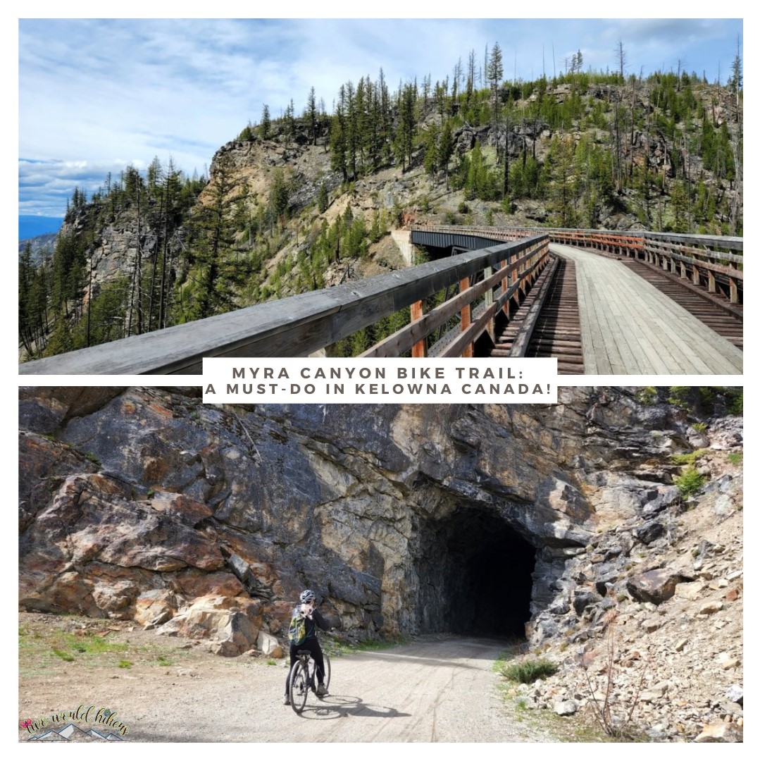 I have a confession; my hubby and I rarely make time for biking! More often than not, our bikes are collecting dust in the garage! We made it a goal to bike more! The Myra Canyon bike trail is a must-do experience in beautiful British Columbia, Canada! There are 18 trestle bridges, 2 tunnels, and spectacular views along the historic Kettle Valley Railway. If you find yourself in Kelowna BC, you don’t want to miss out on this incredible adventure!