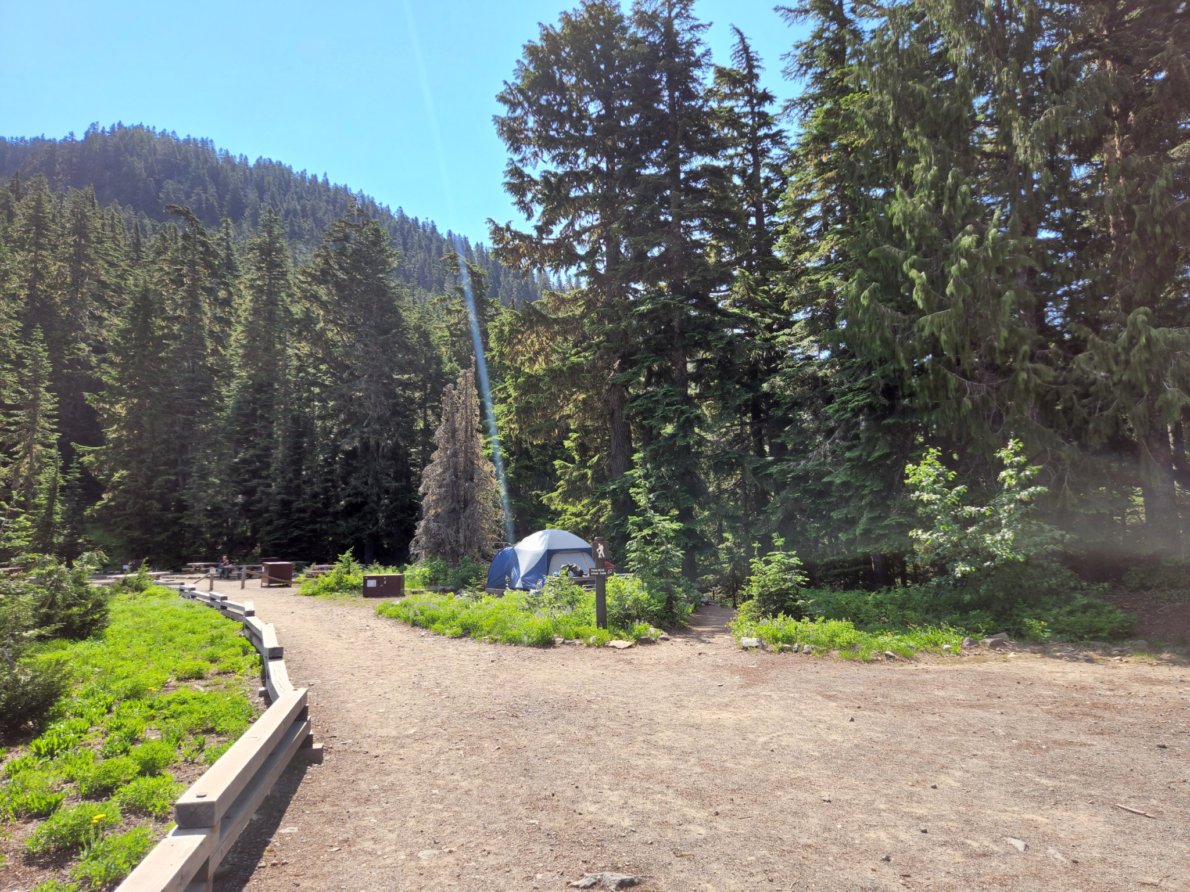 Our campsite next to Spray Park trailhead